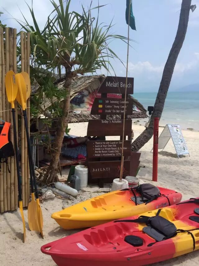 几乎在涛岛和苏梅很多临海或者靠海甚至是拥有私人海滩的酒店都会有浮潜的设备免费出租,一根呼吸管,一个眼镜的面罩,有的甚至还有小船出借(详见下图),有洁癖的人可以自己去淘宝买自己专属的呼吸管,近视眼的人可以自己去淘宝定制适合自己眼睛度数的近视或者远视浮潜眼镜(淘宝也就40-60块钱一副价格很公道)。