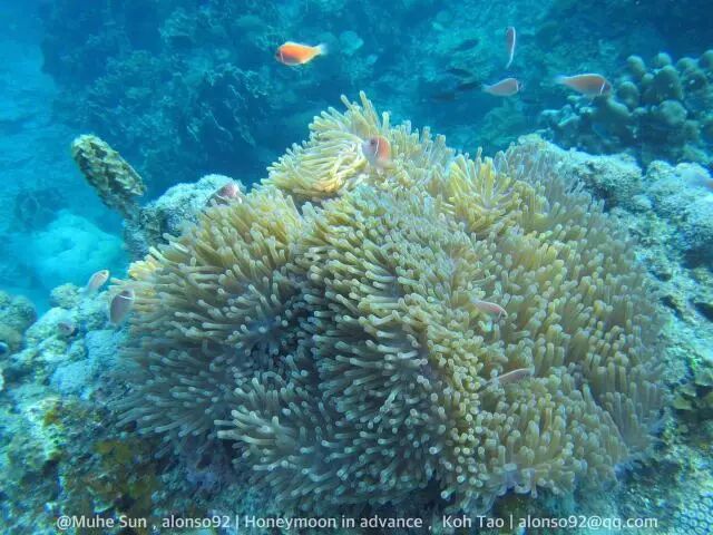 出海浮潜是更加高大上的浮潜方式,但相比于在浅海处想怎么玩就怎么玩不要钱的免费体验方式,这种方式需要增加一定的成本,由于出海要坐私人或者公共的船,船票和私人包船的费用需要自己承担,但价格还算公道,整个涛岛一日游包含大船出海浮潜一个人的cost是1080泰铢(200多一点RMB),如果私人包船是一条船3500泰铢(600多RMB)可以乘坐1-6人,而且想要玩多久就玩多久,没有人会要求你几点回家。另外不会游泳没关系!船老大也是专业的救生员,一直保护着你。船老大还会准备一些面包,来吸引鱼类前来,你可以在水里拿着面包喂鱼,几千条鱼到你手里抢食物也真心很壮观。水下的珊瑚也十分的好看!各类的珊瑚,还是珊瑚中的小鱼鱼们!从来没有潜过水的人去到了那里之后会有一种上瘾的感觉,想一直在水里嬉戏。把水下纪录片那些梦里的画面在现实中全部浮现在眼前!如下图,为全部muhe水下相机实拍,还有我家小喵的水下英姿。