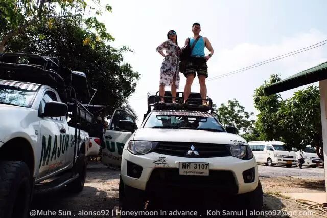 丛林越野可以算是苏梅陆地上最刺激的运动,坐在改装加固的皮卡车的车顶或者车后的加装座椅上,甚至在车顶,数个60度的崎岖的陡坡,整个越野赛道最窄的部分只有一辆轿车的宽度,皮卡车的宽度在角度50度上下的连续盘山水泥坡路上飞速疾驰,实在是惊险刺激!坐在车顶更是刺激万分!