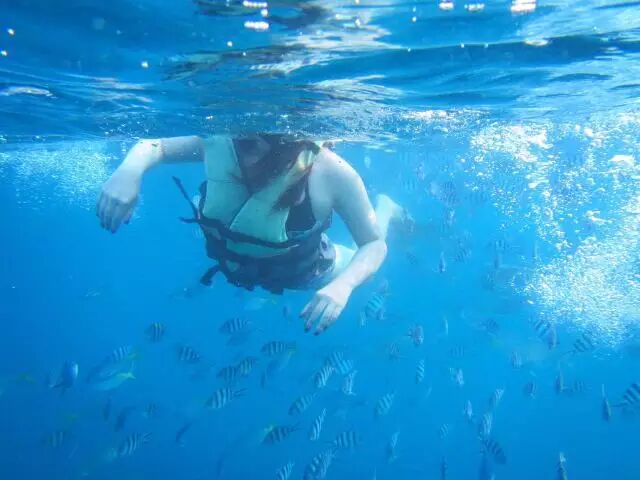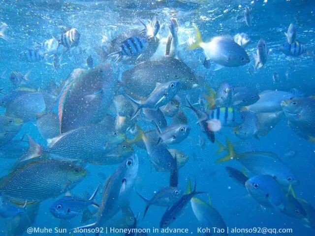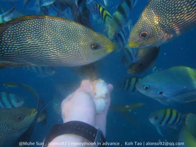浮潜注定是要去涛岛的,一个距离苏梅一个半小时水陆的小岛,比苏梅岛小,设施比苏梅略少,但水上项目和水下项目在涛岛遍地都是!而且即便是在近海的浅海,涛岛海水的水质清澈程度也大大超过苏梅主岛。在一个叫做Shark bay的海域,海水深度刚刚没过膝盖,一低头成百上千条的鱼啊!真心好看!真心好看呢!