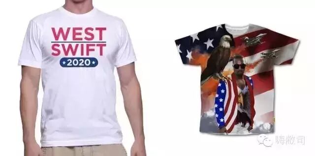 在全球著名的交易平台 Etsy 上,全球的侃爷门徒们已经开始为侃爷设计各种参选时的主题服饰。当然了,服饰还是以美国特色为主。