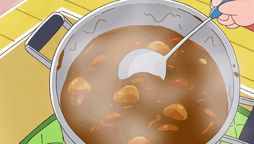 煮到配料软烂之后,用机器将其打成糊状,汤底瞬间就变得浓郁香甜,最后加入咖喱粉后,咖喱的香味就四散蔓延开来!