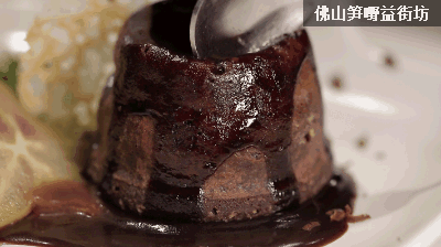 藏在蛋糕里热呼呼的巧克力酱如火山熔岩一般顺势涌出,这一刻,小编的内心是温润而浓郁,看着绵软细腻的热巧克力酱缓缓流出,真的整个心都被融化了~