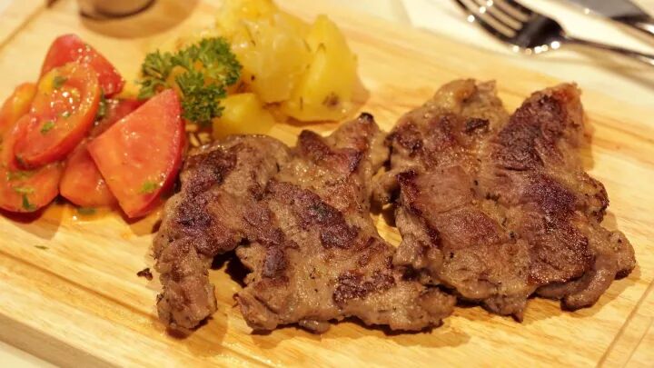 美国梅花猪扒入口香嫩无比,还带有一点点的筋道口感层次丰富,还有沙拉和烤薯角,就算你喺一个胃口超大嘅man,都饱到扶墙!