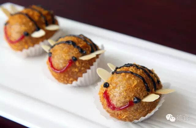 三只小蜜蜂,飞到中花丛中。尝一口“小蜜蜂”,原来是芋蓉作为馅料,配搭奶黄酱!这小蜜蜂既能卖萌,又有“内涵”,又怎么能错过呢!
