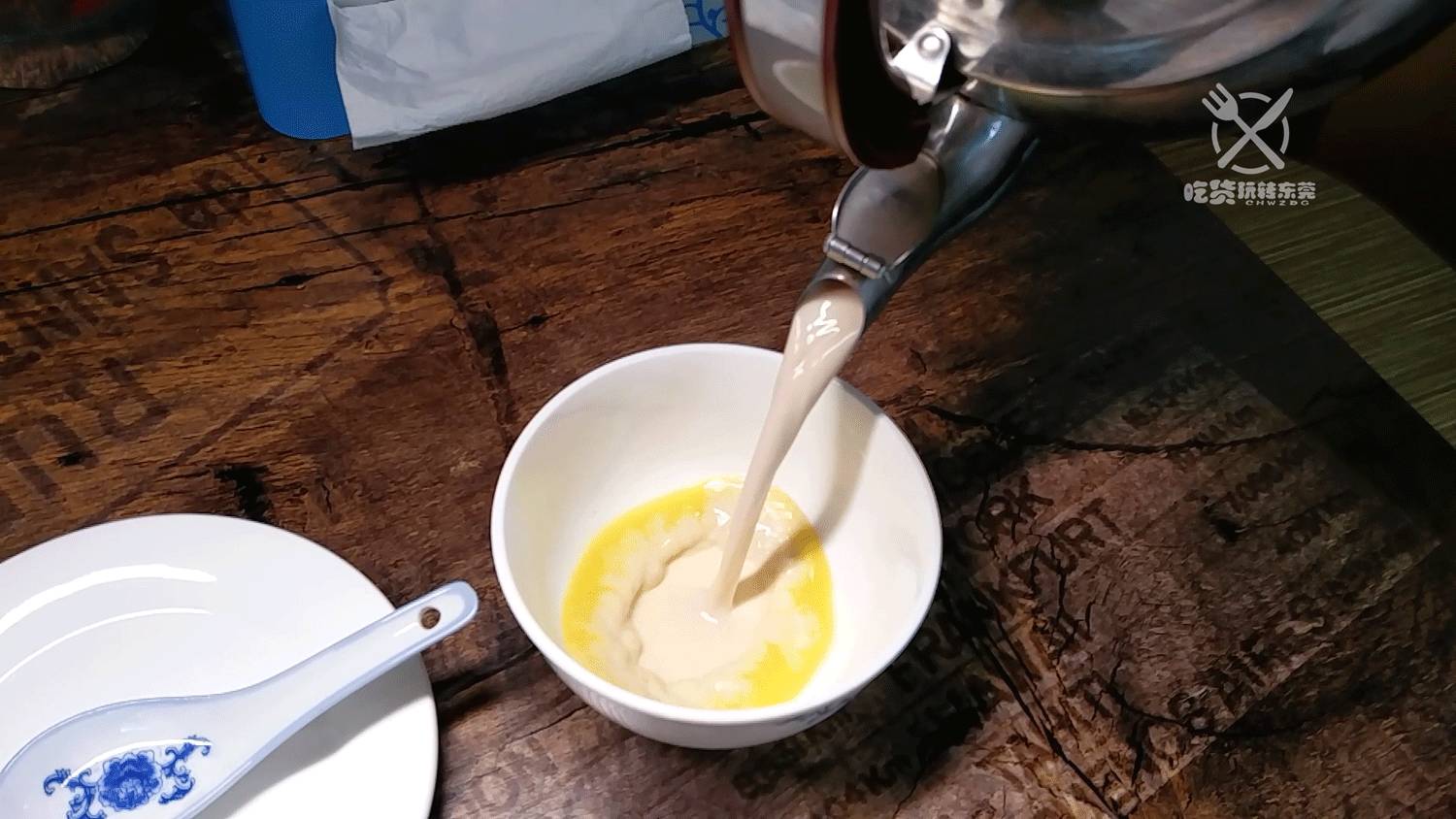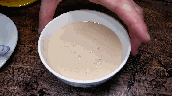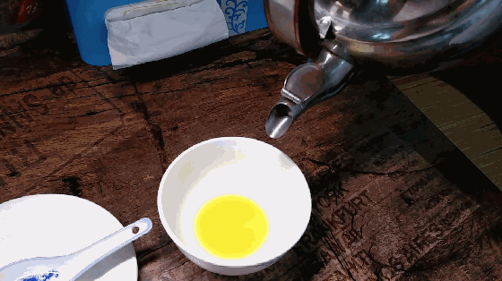 热呼呼的牛奶,瞬间倒进装有姜汁的碗中!然后,静待时间的流逝……