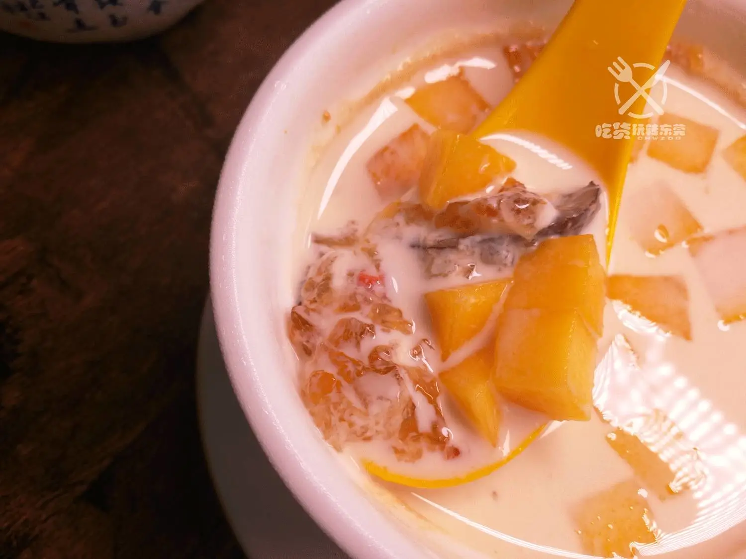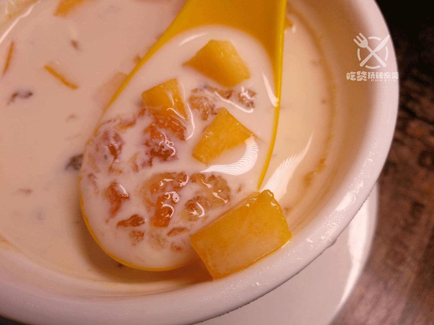 原盅芒果炖桃胶,甜味恰到好处,芒果的香甜和牛奶的完美搭配,是小雅的最爱!