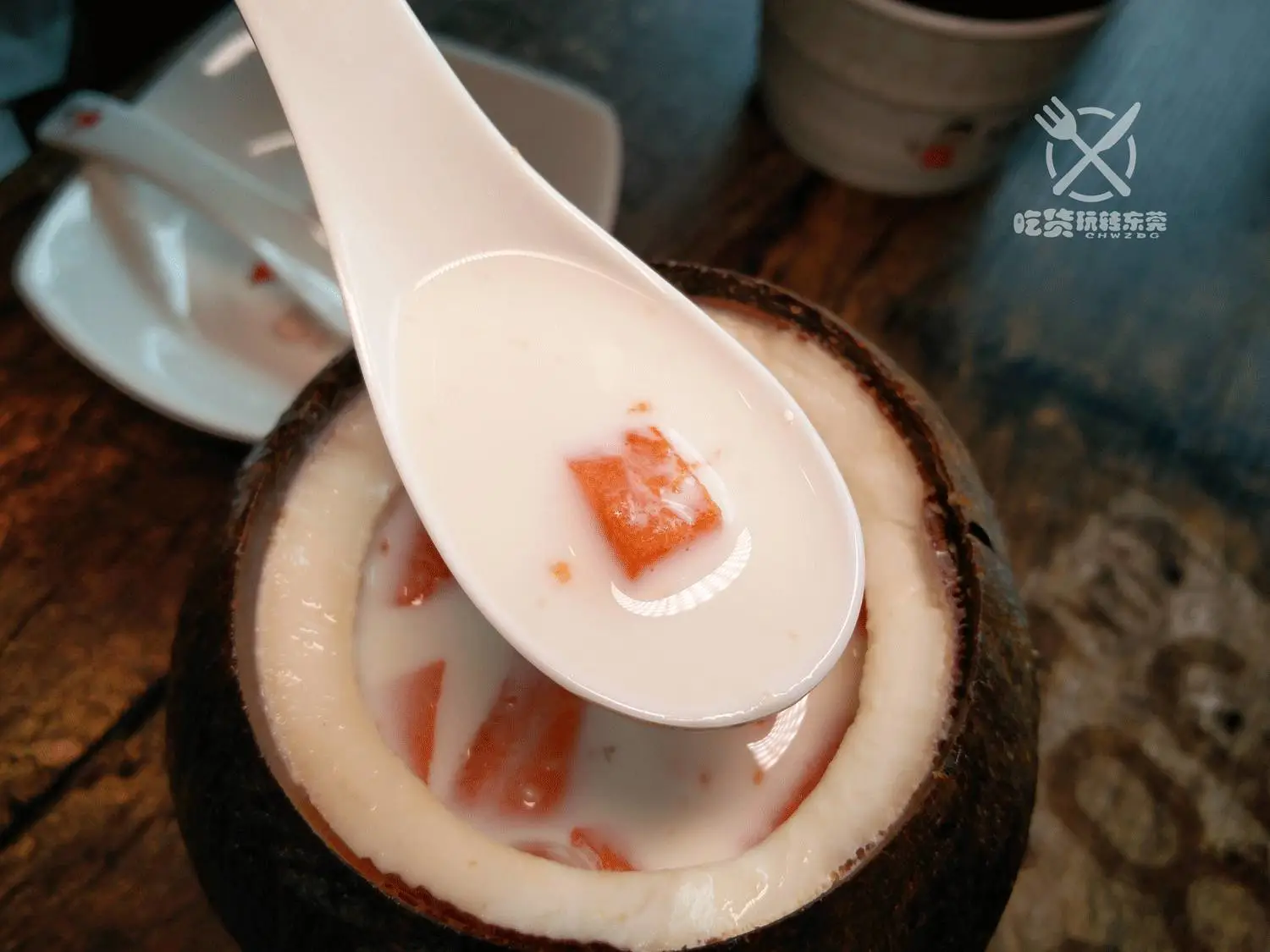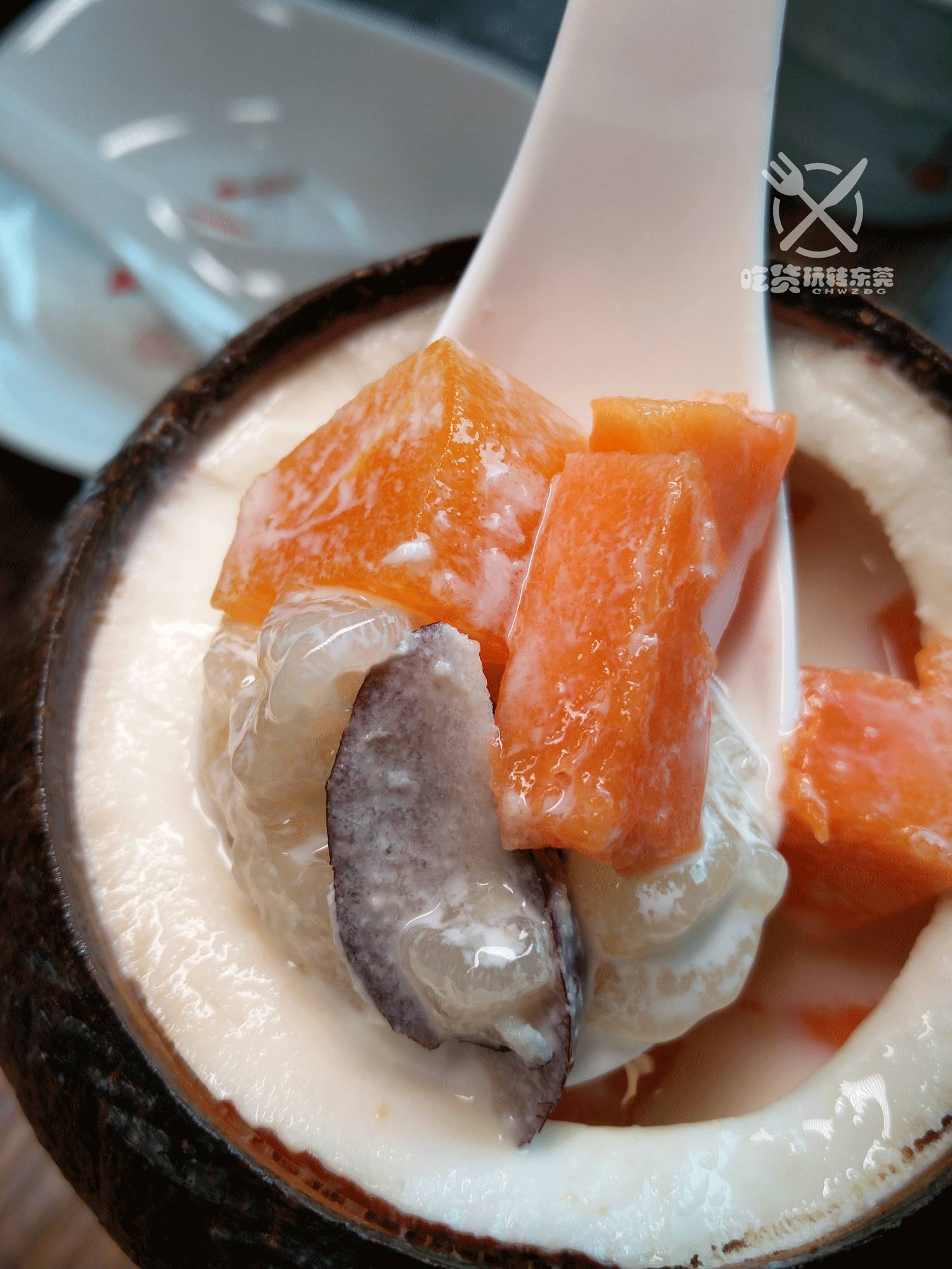 如果喜欢木瓜的孩纸,这个『椰子牛奶木瓜炖雪蛤』肯定岩距~用椰子水、牛奶、雪蛤和木瓜,原盅炖的糖水,滋润到爆!