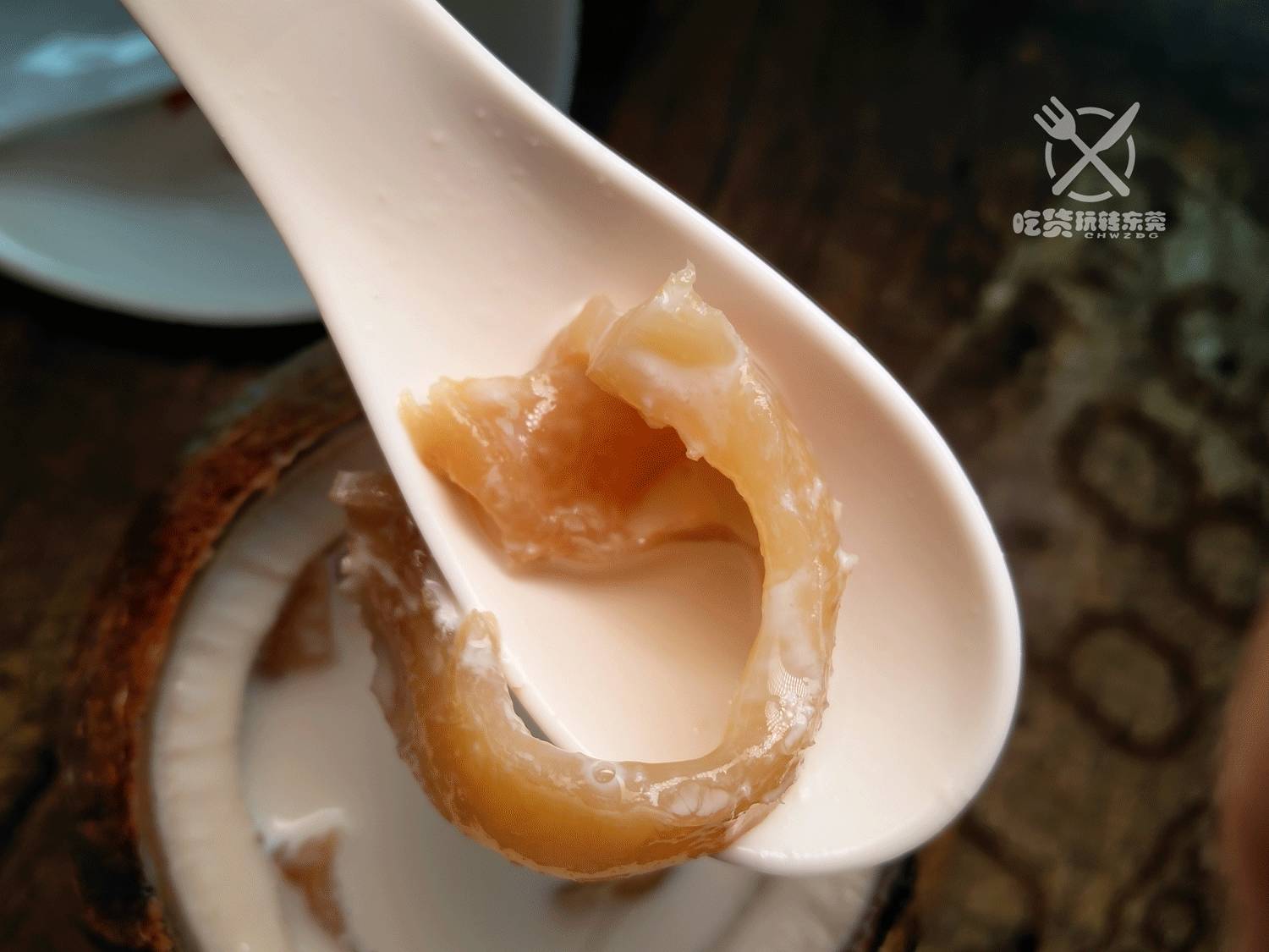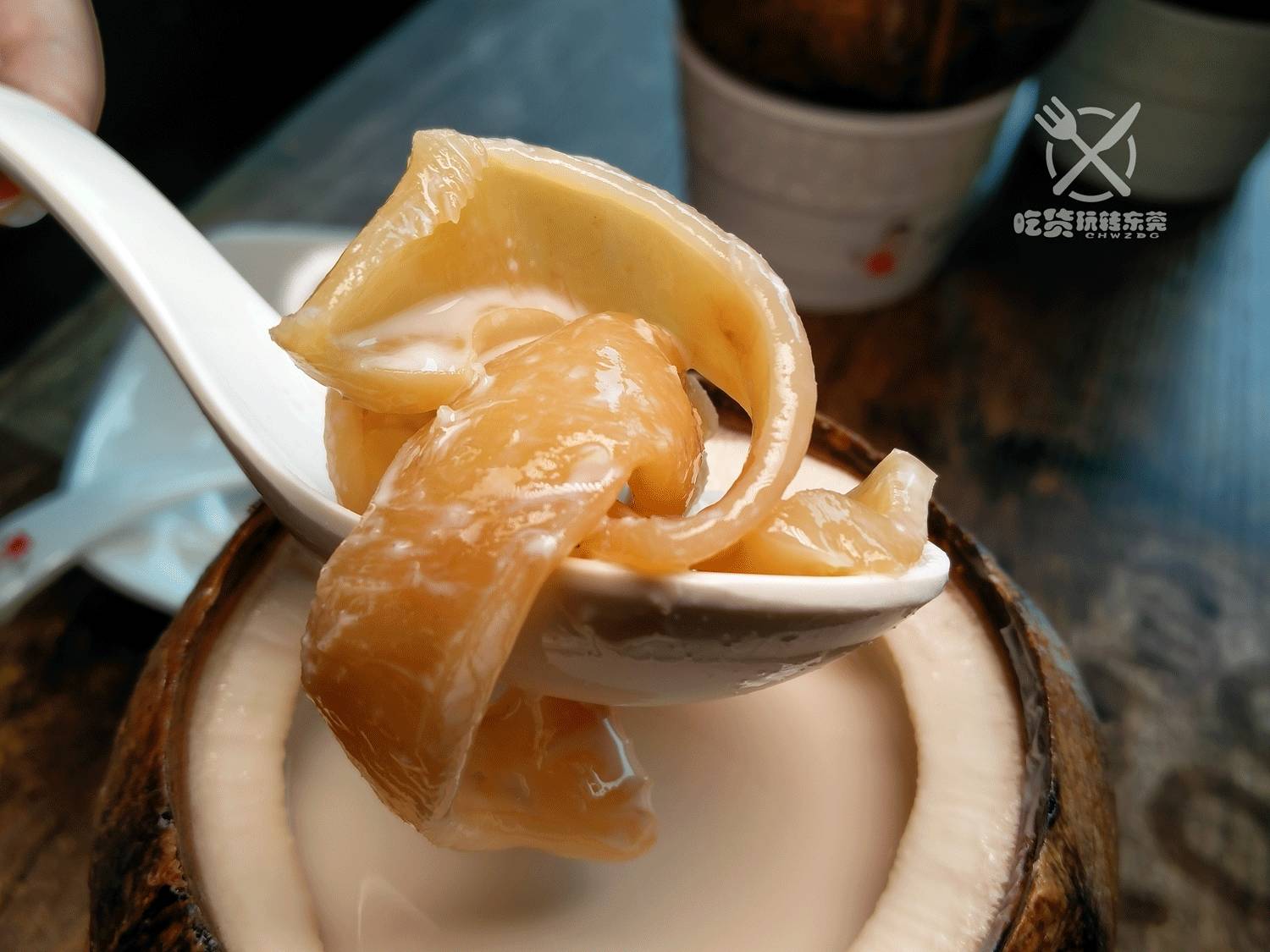 想仲加滋补点,来个『椰子牛奶炖花胶』,用香港进货的“厚身”花胶作为贵价食材,才卖39元!