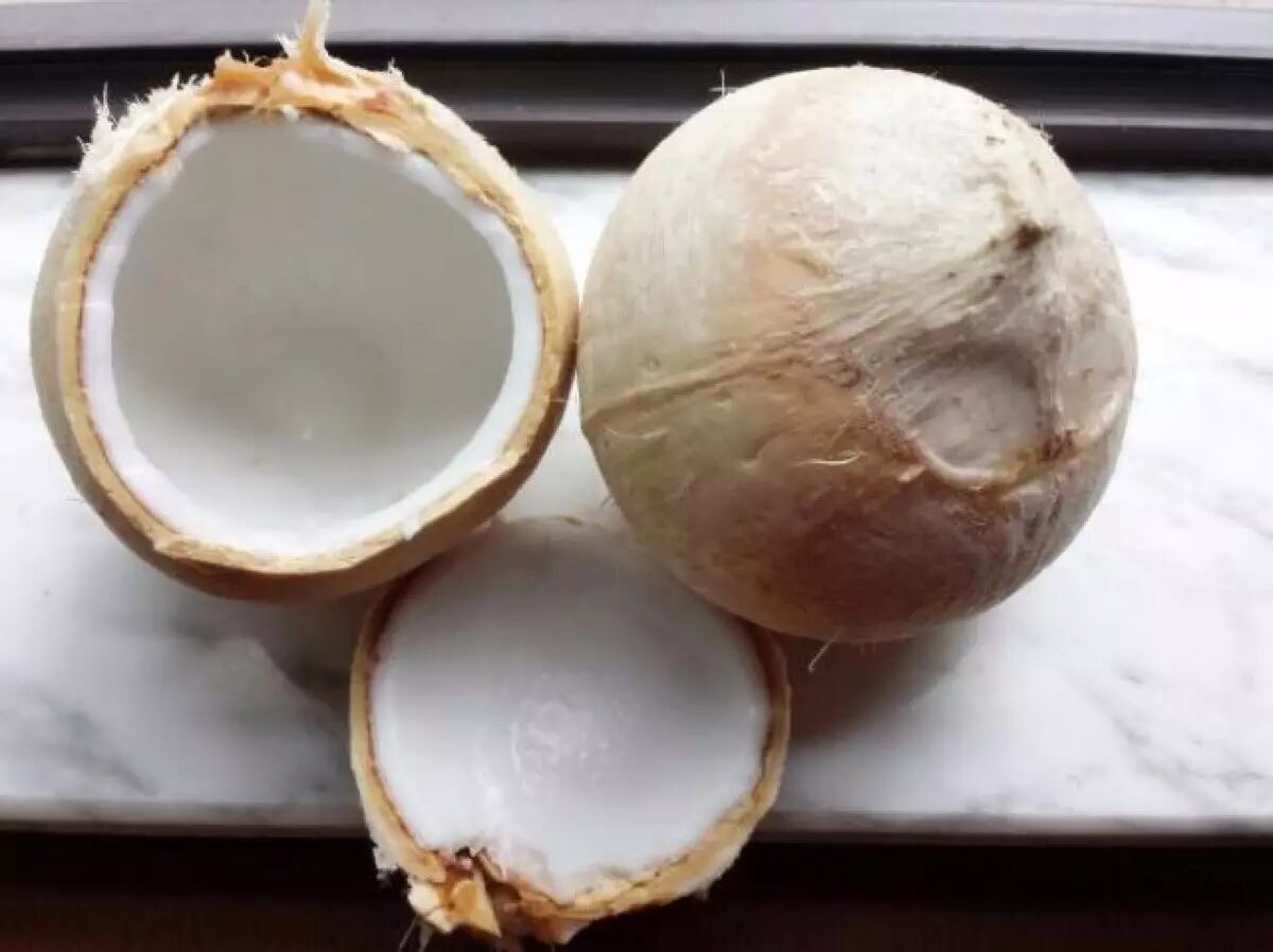 椰青是嫩的椰子,比起老椰子,它的椰汁更解热生津,但它的椰肉就太嫩了,不如老椰子的香甜。