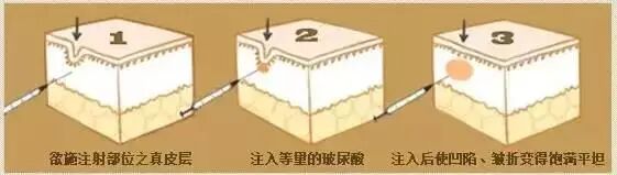 把玻尿酸打到真皮层中,不但可以填充凹陷部位、填补皱纹,还能让你的皮肤变得水水润润呢!