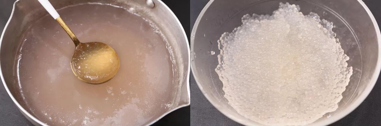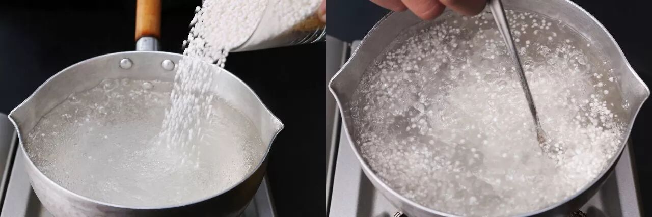 煮西米时会膨胀,要多放些水。西米一定要等水沸腾后放,这个非常关键的。煮好的西米粒粒透明如珍珠般。