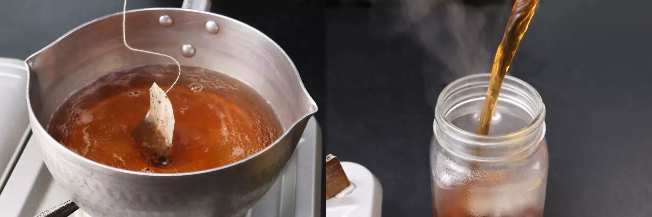 水烧开放入茶包,不要一直放在锅中,需要不断提起来,这样煮出来的茶不会有苦味,煮好后倒入杯中