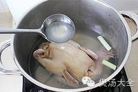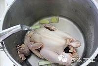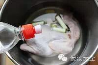 2、第一次给鸡飞水很重要,可以把杂质和血沫、脏东西清理干净,加入葱姜和白酒可以给鸡肉去腥,让鸡汤的口感更好
