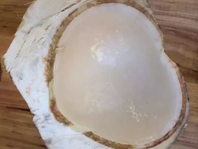 嫩椰肉一般比较薄,勺子一下去就能勺出来,晶莹剔透,嫩滑爽口。