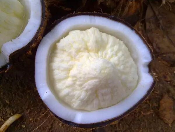老椰肉硬,多数用来榨汁或做菜。