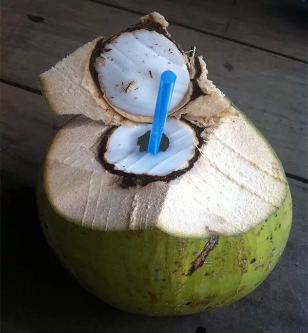 椰子水很清澈,且相当清甜、晶莹透亮,清凉解渴。