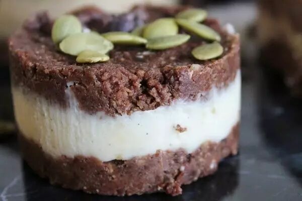 冰淇淋夹心外皮:荞麦粒(浸泡于水中1-3小时) 1杯、可可粉 1/4杯、生南瓜籽 1/4杯、肉桂 1/2茶匙、籽 3汤匙、椰枣 1杯/视需求增加、坚果奶油(可不用) 2汤匙