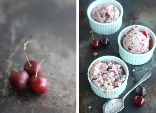 冰淇淋主要食材:全脂椰奶 1杯、低糖椰奶 1杯、糖 3/4杯、樱桃萃取物 1茶匙、去核的冰樱桃 1杯、莱姆汁 1茶匙