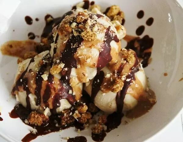 6.将冰淇淋放入碗中,大量淋上步骤4备好的佐料,立即享用吧!
