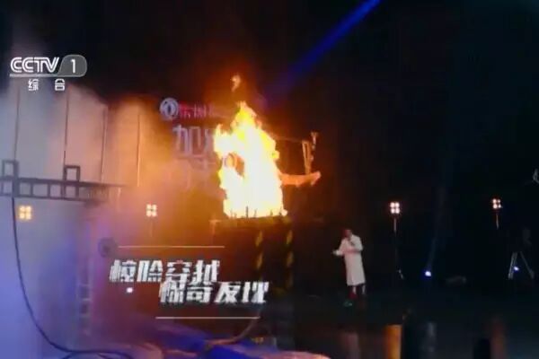 图为伊一挑战穿越烈火惊险升级