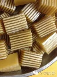 11.三分钟后糖水刚熟,是黄色半透明的。蒸的时间太短糕还没成型,蒸太久了层与层之间又粘不上整个千层糕会散掉,所以蒸三分钟为佳。