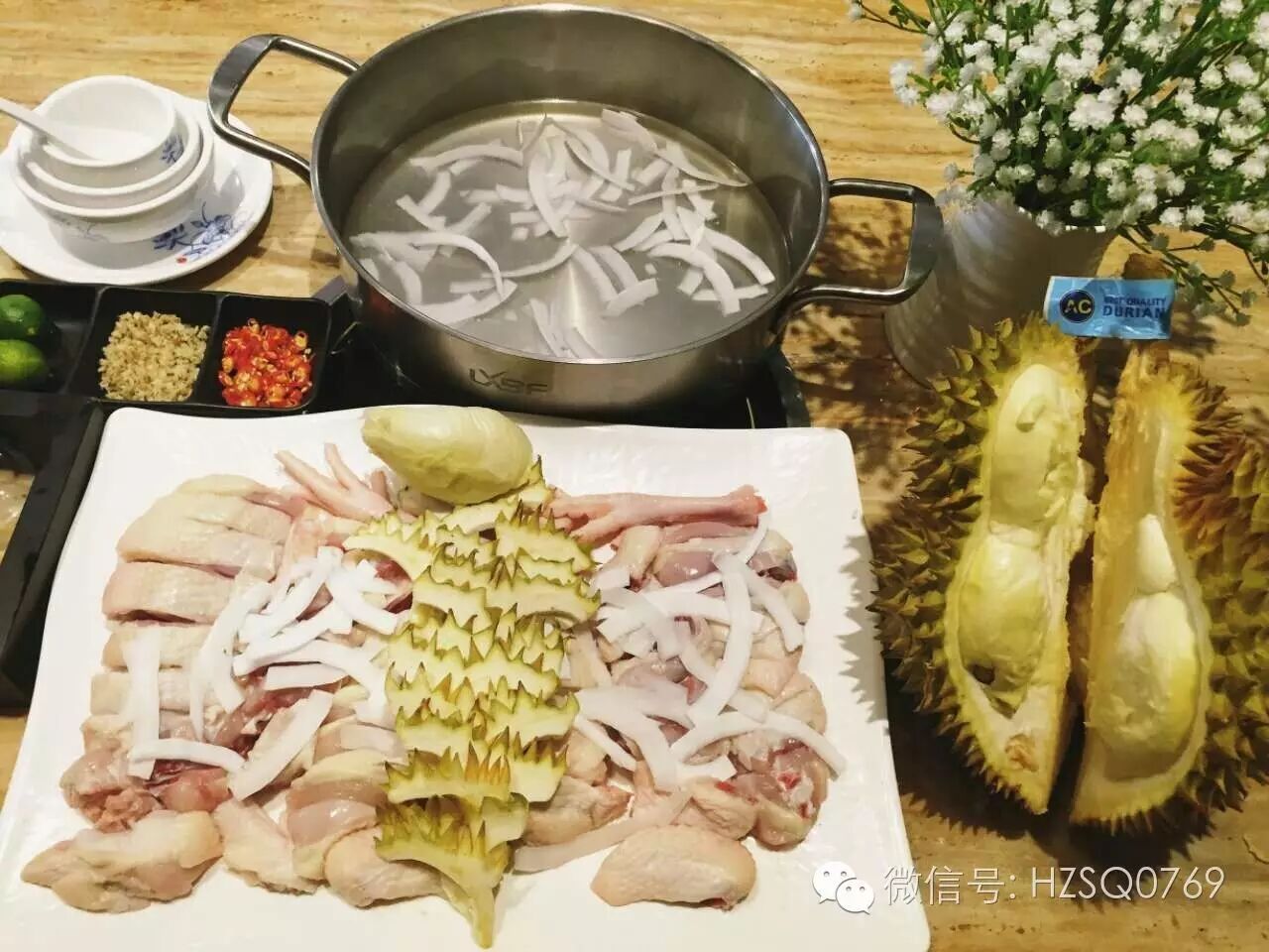 椰林风情特色椰子鸡采用新鲜的海南椰子水做汤底,搭配海南文昌鸡,原汁原味,选用的榴莲,极品松茸菌,珍珠马蹄等都是新鲜的材料,椰子汁也是用椰肉鲜榨。