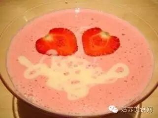 将草莓(225克)、豆腐、蛋白、鲜奶全放入搅拌机内拌匀,取出后混和调味料,放入碟内,上层饰以草莓及奇异果,然后放进微波炉内,高火煮约3分钟即成。