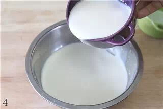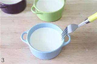 4、把小碗里的牛奶顺着小口缓慢倒回盆里。