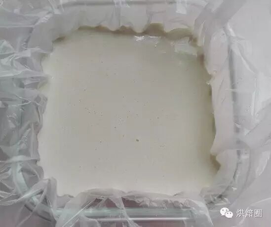 ⑤冷却后盖上保险膜放入冰箱冷藏一夜或放置冷冻室至没有流动液体(大概1.5-2小时);
