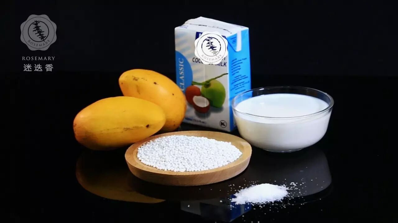 1. 芒果、椰浆、牛奶、西米、冰块、糖等备料