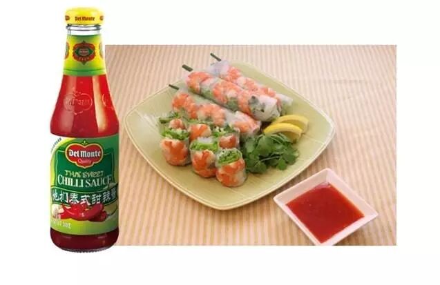 材料:泰式春卷皮、虾仁、粉丝、生菜、香菜 /调料:地扪泰式甜辣酱
