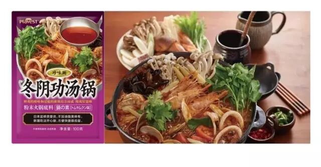 在锅中放入1000-1200ml 的水(或骨头汤),柠檬2 片,待水沸腾后加入100g(1 袋)的本品和适量的油,搅拌均匀,加入虾… 150g / 黑木耳… 100g / 午餐肉… 100g / 白菜… 100g / 土豆…100g / 生菜…100g / 金针菇…50g / 番茄…50g待蔬菜煮熟后即可享受到一份地道的冬阴功火锅了。