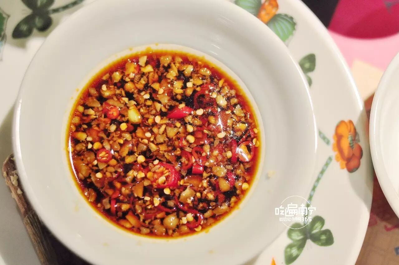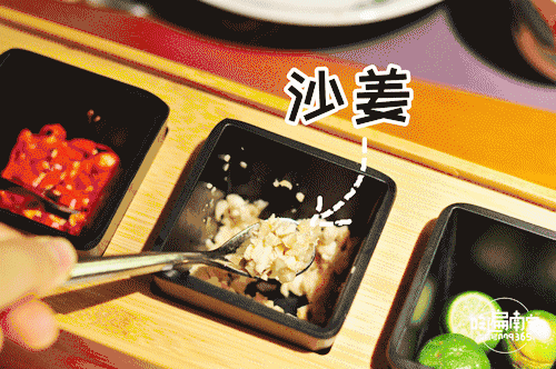 每桌上面都会有沙姜、辣椒、金桔、酱油。首先要姜适量沙姜加入碗中,用小木头进行磨制(碗是有纹路的,老板真的非常细心),磨制到有点汁水就好。