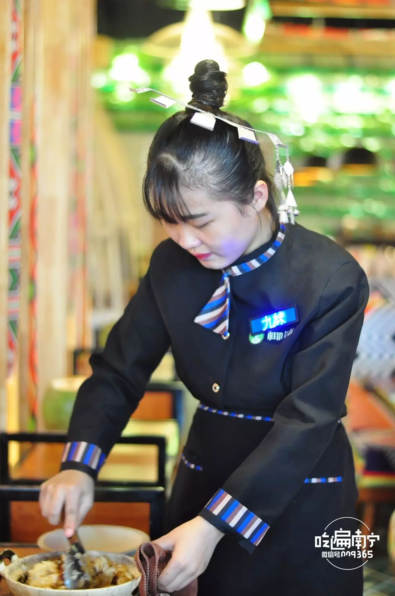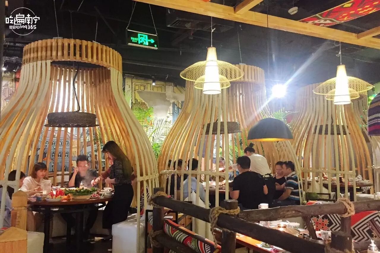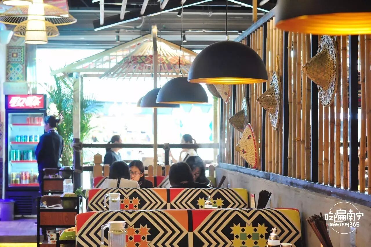 竹子和绿植的元素居多,符合原生态的概念。一进门服务员就以一句黎族方言“吧郎吧郎(意为很高兴遇见你)”并举起双手摇晃手环欢迎客人。