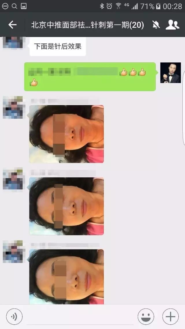 现场为学员操作,面部微雕针刺技两次治疗后的效果 看下图。