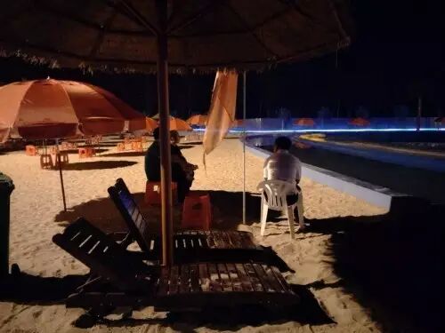 白天的这里,充满着欢乐和情趣,你可以躺着沐浴阳光谈笑风声,可以沙滩漫步自由自在,更可以玩些尽兴的冲浪,潇洒开怀!