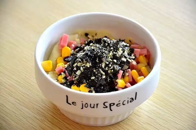 综合土豆泥,培根、海苔、玉米、脆片铺满了土豆泥的表面,一口吃下,同时有肉香、芝士香、玉米的甜、海苔的脆、土豆泥的绵,幸福感满满。