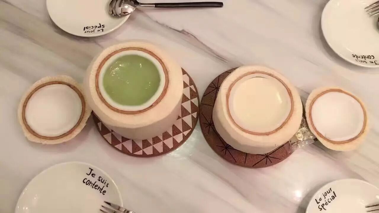椰子冻,这个可能无需赘言了,众多吃货的心头好,兔老师家用的是泰国进口椰子,没有腥味,开壳去椰青,加牛奶制作成的椰子冻,清新素雅的椰汁香瞬间席卷口腔,鲜嫩Q弹的椰子冻温柔地游走在唇齿间,这一刻尊的值得闭上眼细细品味,香滑好吃根本停不下来。