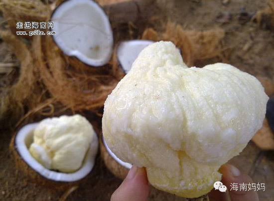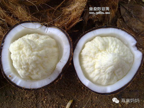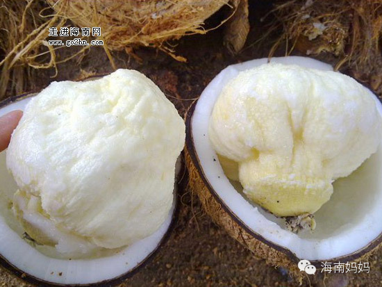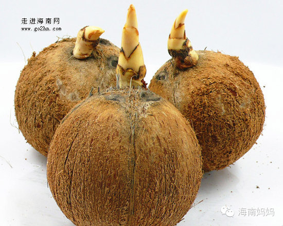 内地的朋友一般就没机会吃到了。因为一般销售的椰子都是喝水的多,必须是发芽的老椰子才能获得这个美食,基本上都是海南小朋友才有的口福。哪个海南骚年没吃过的举手!