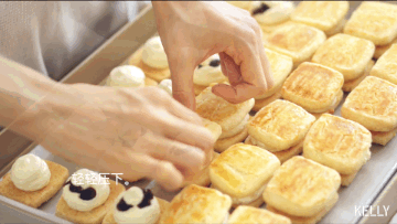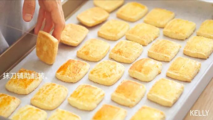 左手持抹刀轻轻把一半饼干翻过来(一半啊~)