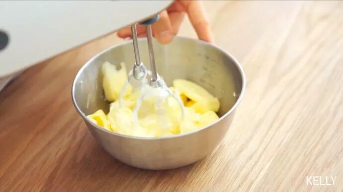 软化好的黄油打散。