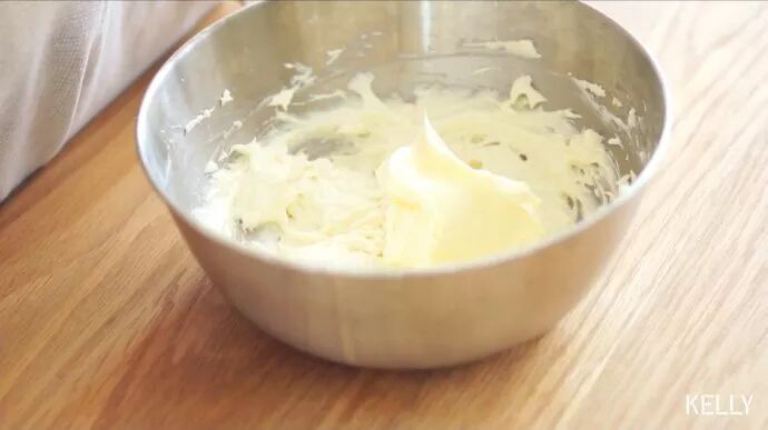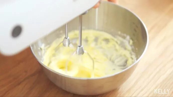 黄油软化到位,中速打发。