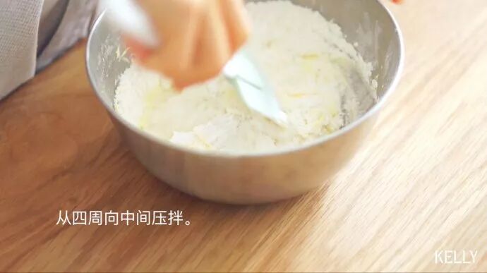 从四周向中间压拌均匀。