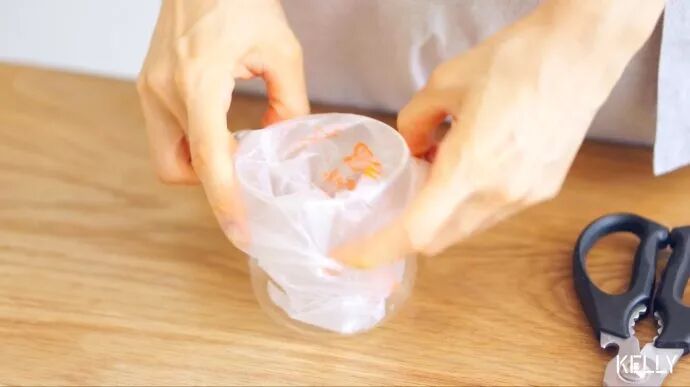 取一口杯撑开袋子。