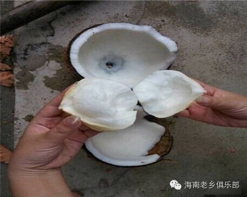 海南人听过没吃过的椰子饼,你吃过吗? 2023-04-19 23:50:29 海南人习惯将已经发芽的老椰子芯叫椰子饼,。去皮的老椰子和没去皮的对比乡下老椰子很便宜,都懒得卖,一般留下来喂鸡。老椰子发了芽,埋在土里就可以生长咯。来个近照,够酷吧!长芽老椰子被打开了,里面还有一些的水,不是很甜。这个就是听过没见过的椰子饼啦!甜甜的,像米花糖,外一层有点脆。海南俗话叫做椰子饼。你吃过吗?内容来自海南老乡俱乐部点击左下角“阅读原文”查看更多海南精彩↓↓↓