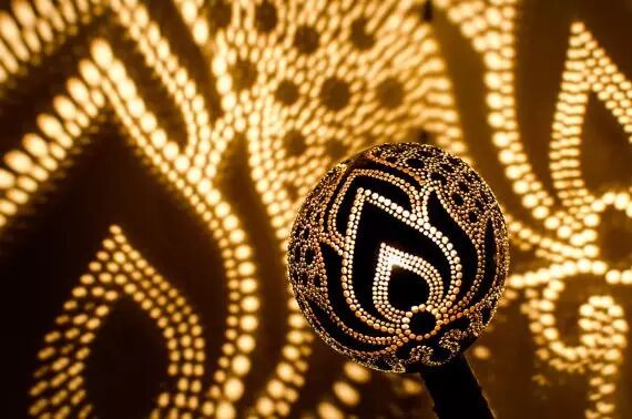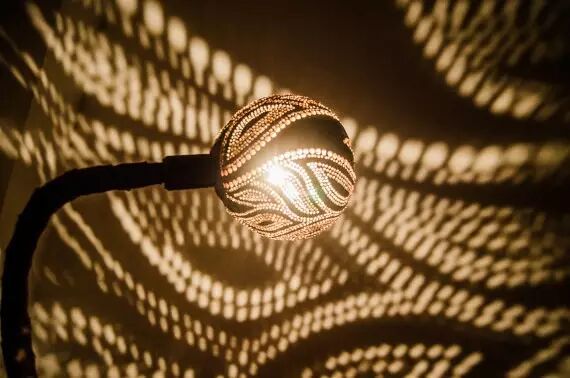 将椰壳身上钻出上千个孔,再用作灯罩,会照射出什么效果?