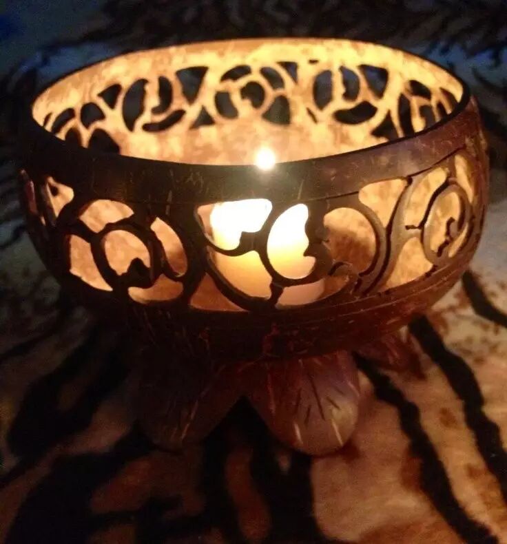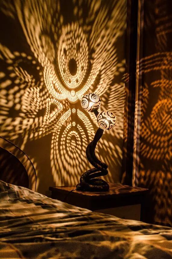 其妖娆的灯影照出的是一种迷幻的浪漫,说不定就会发生点儿什么心醉神怡,椰子壳的自然温暖完胜今天工业灯的冷漠感。