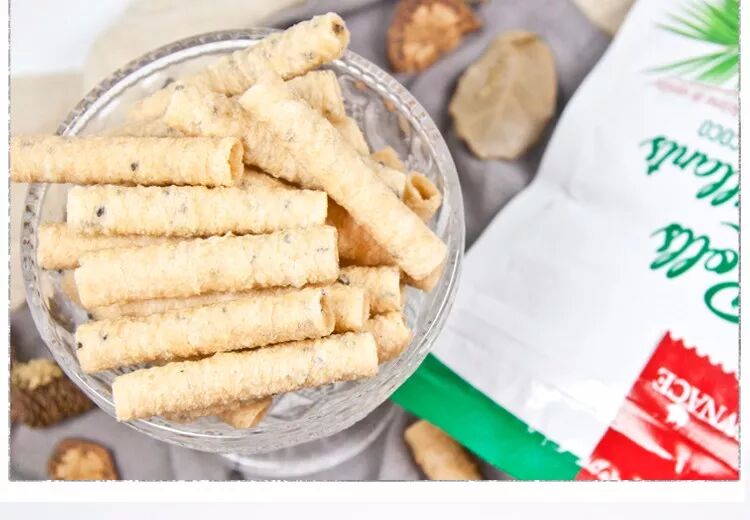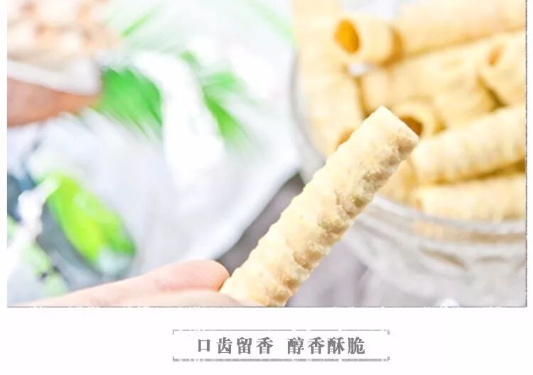 比一般的蛋卷更脆更香酥,包装运输不可避免有点点碎渣,但是在可以接受的范围内,也就差不多偶尔一包有1-3根左右不太完整吧。