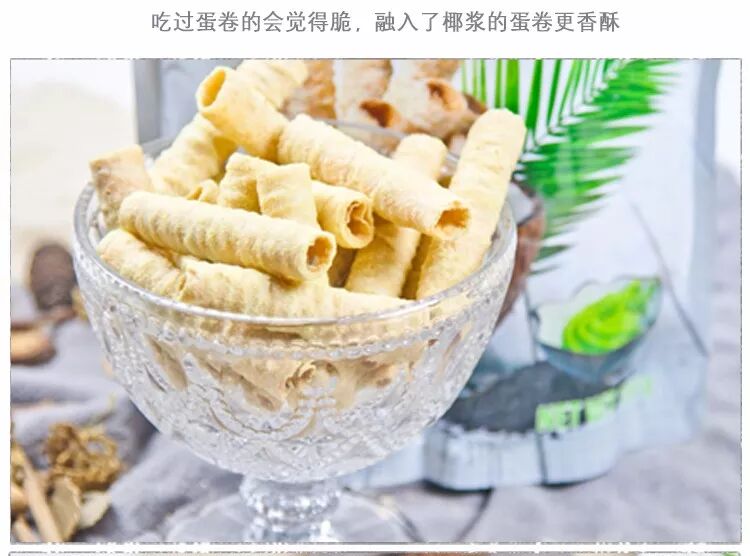 椰子卷所用到的椰子、优质木薯粉、新鲜鸡蛋、黑芝麻等均选自泰国,原料100%天然、无添加,不含防腐剂、人工色素、香精。